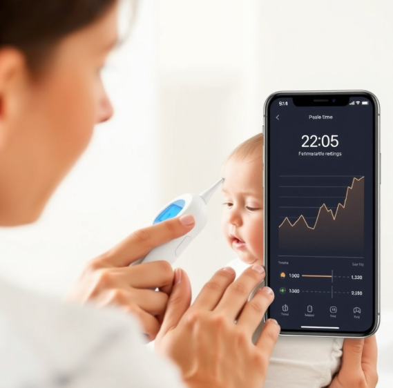 “밤중에 열이 나면 당황하지 마세요. 스마트 체온계 하나면 실시간으로 아이의 체온을 확인할 수 있습니다.”